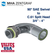 Hydraulic Hose Fitting Adaptor, Steel, 90 Degree Elbow, Male SAE / C.61 Split Flange Head